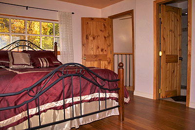 The upstairs North Ridge Room is adjacent to the Granite room and does not include it's own private bath. It shares its bathroom with the Granit room. It is either accessed through a pocket door in the Granit room, or via its separate outside entrance. The North Ridge Room has a small fridge, toaster and coffee maker.